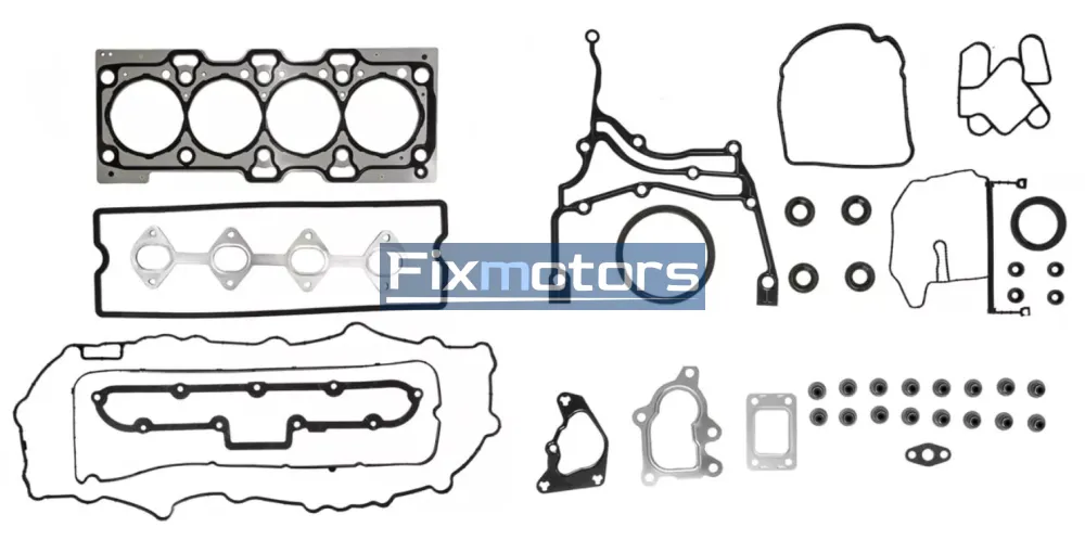 Комплект включает (примерный список компонентов, входящих в стандартный набор для этого артикула): прокладку головки блока цилиндров, прокладки выпускного и впускного коллекторов, прокладку масляного поддона, прокладку крышки клапанов, уплотнения форсунок и сальники, прокладки термостата и водяного насоса, различные кольца и уплотнители. Точный состав комплектации соответствует спецификации производителя для артикула 52571871.